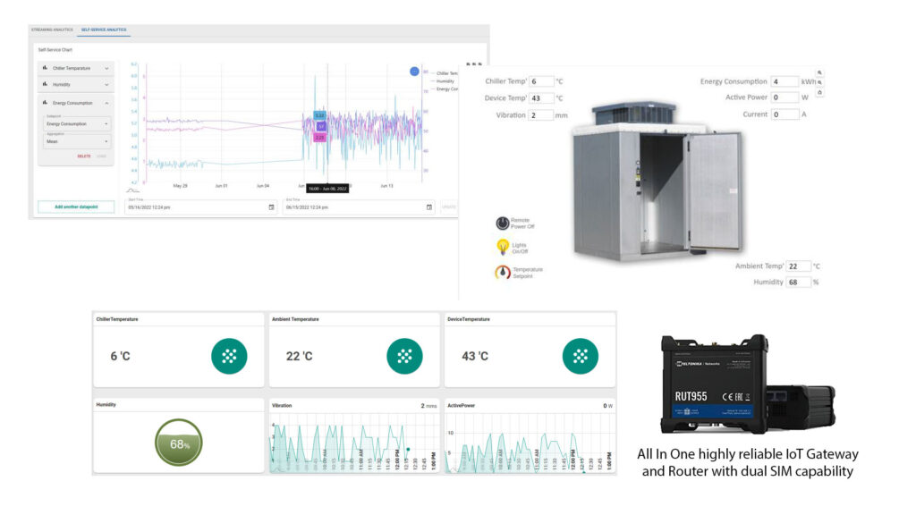 The solution allows reducing maintenance costs for chiller systems and prevent loss of good due to temparature changes. It also allows confirming to the condition regulations specified within the sector the customer operates in.